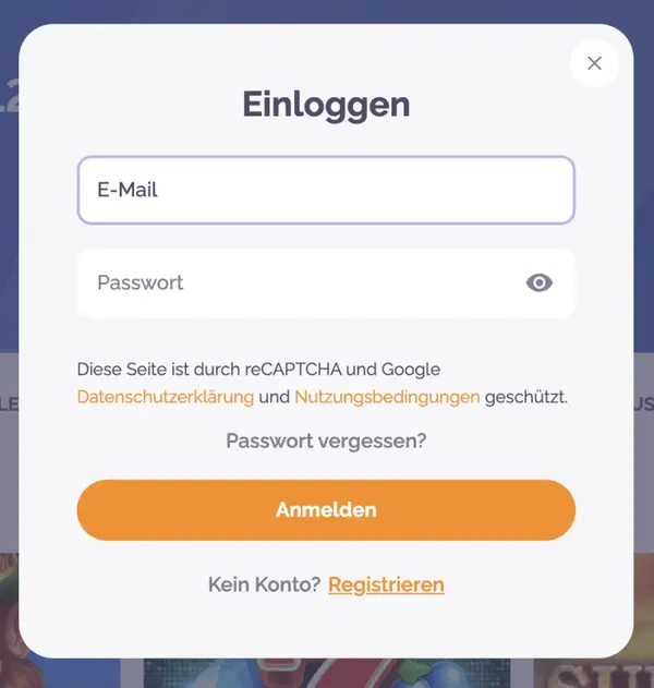 Um dich zu registrieren, öffne unsere Website und wähle die Registrierungs-Schaltfläche im Header-Bereich. Du wirst nach Basisdaten wie E-Mail, Passwort und persönlichen Informationen gefragt, die für Kontoinhaberschaft und Zahlungen benötigt werden. Nachdem du das Formular abgesendet hast, folge dem Bestätigungsprozess auf dem Bildschirm – dieser kann eine E-Mail-Prüfung beinhalten. Deine erste Einzahlung erfolgt in der Kasse nach dem Login; dort kannst du Visa, Sofort (Klarna), Jeton, MiFinity oder Krypto wählen und ab €20 starten.
